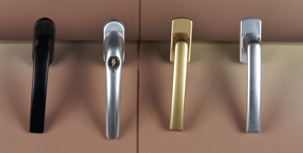 Diferentes herrajes de acero inoxidable a elegir para nuestras ventanas de madera.