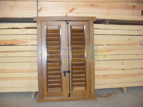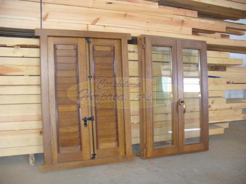 Ejemplo de ventana de madera que incluye unas preciosas contraventanas mallorquinas con lamas móviles. Ideales para egular el paso de luz y aire cómodamente.
